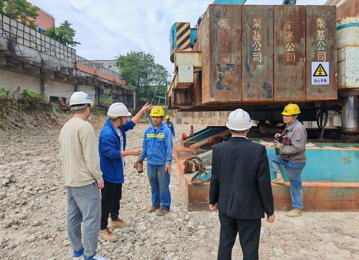 安委会一行抵达工地后,径直走向桩机正在作业的区域,认真听取了项目负责人关于施工流程、设备运行以及安全保障措施的汇报。安委会一行强调,桩机设备的稳定运行是施工安全与质量的基础,任何细微的故障隐患都不能放过,必须严格按照设备操作规程执行,定期进行全面检修与维护。同时详细检查了桩机设备的性能、运行稳定性以及安全防护的可靠性,认真查阅设备维护保养记录,以确保每台设备都处于最佳工作状态,避免因机械故障引发安全事故。
