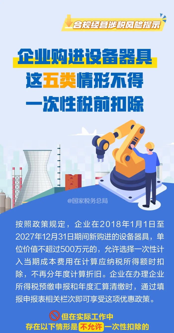 企业购进设备器具,这五类情形不得一次性税前扣除