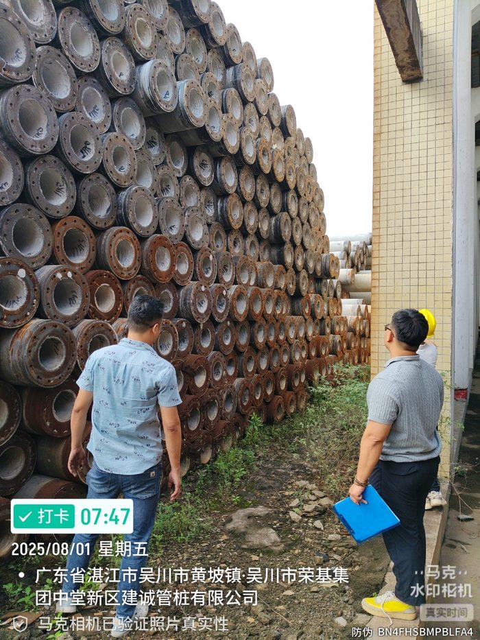 8月1日清晨,14个盘点小组的40名管理人员前往管桩库存场,正式开启管桩库存盘点工作。各小组工作人员手持盘点表,对照库位图对管桩逐根、按型号进行清点、核对和记录,现场工作秩序井然。