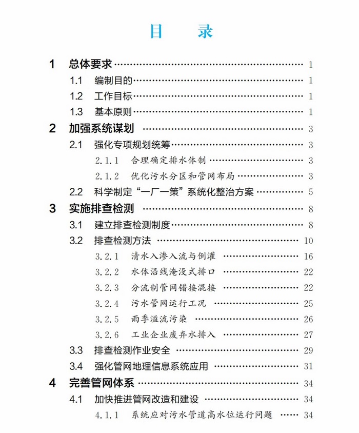 本指南的主要内容包括:总体要求、加强系统谋划、实施排查检测、完善管网体系、健全长效机制、强化政策保障。