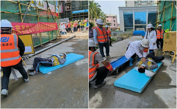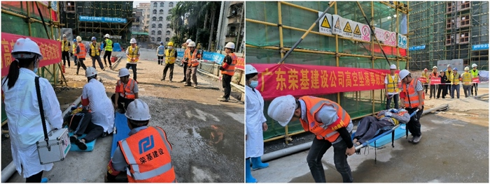本次演练共设五个项目,分别为:高空坠落应急救援、触电事故应急救援、消防安全应急救援、坍塌事故应急救援及食物中毒事故应急救援。