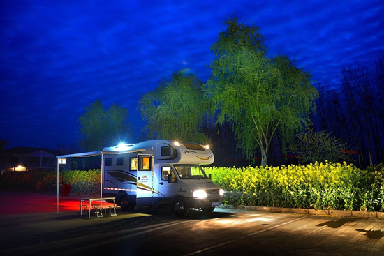 傍晚时分,可以随意停靠在湖岸、沙滩、草地、森林中,打开房车的供电系统,支起遮阳篷、桌椅板凳、开启野炊模式,做着适合自己口味的饭菜;餐后还可以看看户外电视、听听音乐、唱唱歌、洗个热腾腾的澡,睡在柔软舒服的床上进入梦乡。
