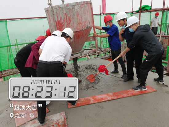 2020年4月21日,一个值得庆祝的日子,龙腾广场举行了3#住宅塔楼封顶盛典仪式。