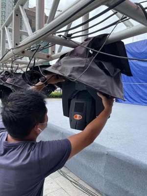 2021年5月21日,荣基广场迎来了湛江少儿艺术展演。早晨,策划部开始搭建舞台与调试音响设备,为晚上的展演做准备。