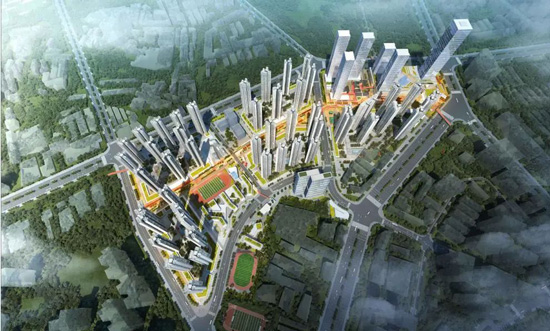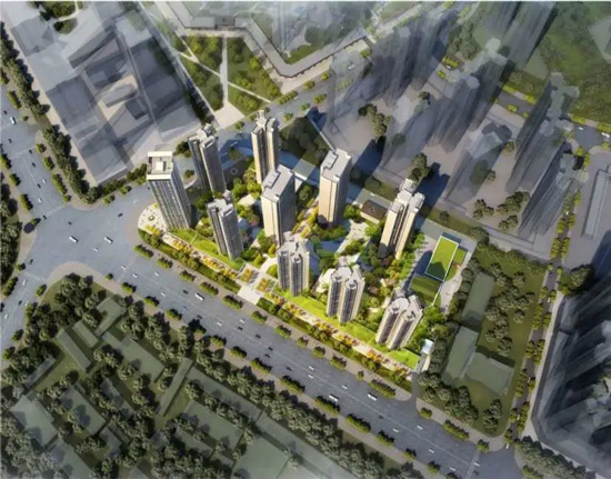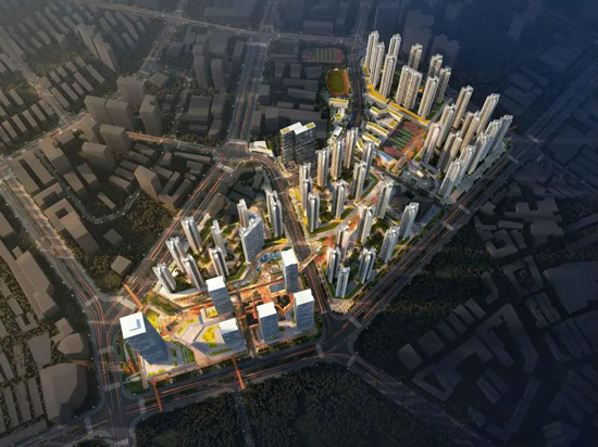 项目整体规划及效果图同步曝光,规划一廊两节点多组团,包括万象广场公园、地标超高层写字楼、万象城、南城里等配套。