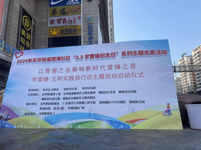 今年3月5日,是第61个学雷锋纪念日,亦是第25个中国青年志愿者服务日。为了传承雷锋精神,共建和谐社会,3月5日上午9:00,一场由乐华街道团工委、观海社区党委、观海社区妇联主办,荣基广场、海洋大学机械工程学院等多个爱心单位共建的“学雷锋•文明实践我行动”3.5学雷锋纪念日公益集市活动在荣基广场外举行。