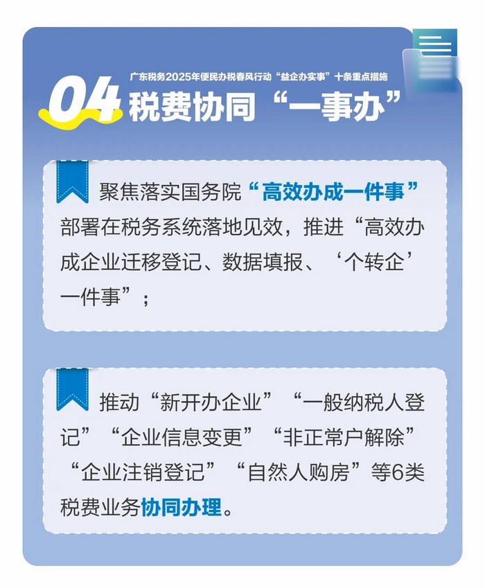 关注!广东税务2025年便民办税春风行动“益企办实事”十条重点措施有这些~