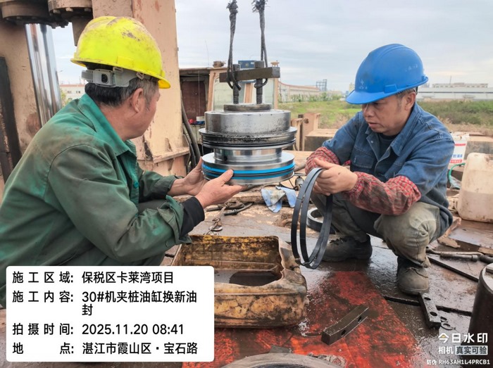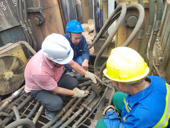 随着各个在建项目逐步进入关键施工阶段,桩机设备的稳定运行已成为影响工程进度与质量的核心要素。面对这一重要任务,荣基建设的一线团队进一步强化了对桩机设备的日常维护和精细化管理。凭借长期积累的丰富现场经验,他们培养出了快速识别液压桩机运行异常的敏锐能力,无论是设备运行时产生的细微异响,还是控制仪表上的压力波动,都成为他们判断设备状态的重要依据。他们系统地排查液压系统的运行稳定性、油路密封状况、结构件的完好性以及电气连接的可靠性等关键环节,精准定位故障源,并迅速完成维修调试,及时消除运行隐患,确保桩机设备在施工高峰期始终保持良好的运行状态。