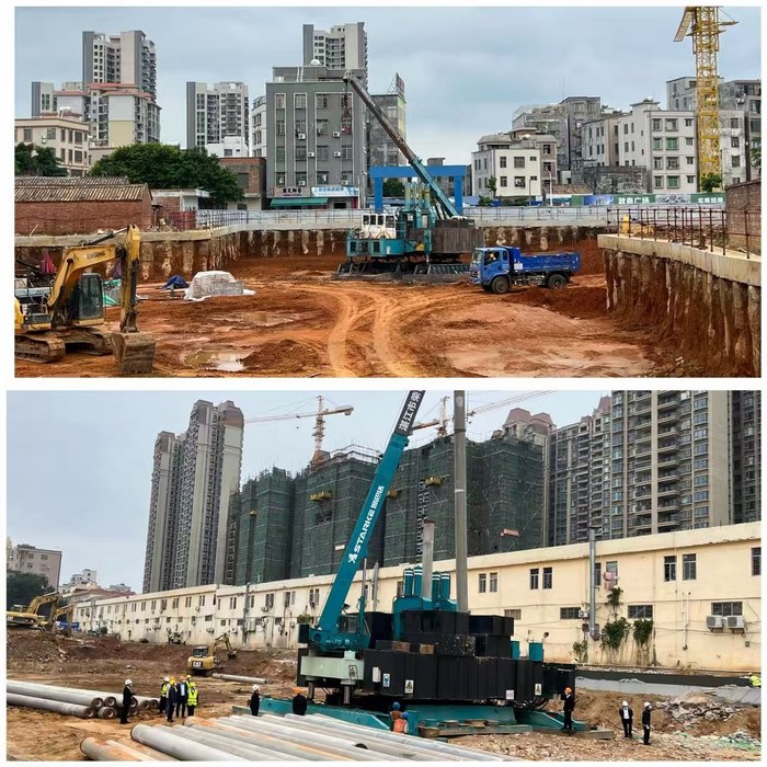 当清晨的第一缕微光尚未完全驱散寒意,工地已然苏醒。此刻的湛江,早晚温差显著,沿海的阵阵寒风更添几分凉意。施工人员呵着白气,迅速投入到紧张的作业之中。作为项目先行的基础环节,打桩作业的进度直接影响着整体工程的推进。现场,桩机屹立,在晨曦中轰鸣启动。施工人员全神贯注,在指挥人员的精准指令下,将一根根管桩沉稳有力地打入地基。