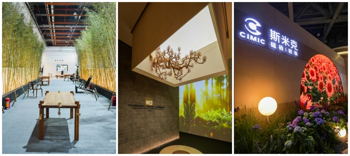 此次参会,我们还有着一个重要的目的,那便是为了更好地服务住宅客户,为他们打造更为优质、舒适的生活空间。因此,我们专门探访了新材料、新工艺的展厅,认真探寻那些能为住宅设计增添更多亮点与品质的元素,作为未来房地产项目方向的关注点,以精装房工程为例,如何摒弃传统思维,靠纯人工、或者是传统材料做造型会有成品瑕疵及成本问题,如何通过运用大量已经预制好的铝收口线条、弧形造型板、复合材料。从而控制施工落地效果量化、标准化以及人工材料成本问题。更加关注如何通过用新型材料,简易工艺,多样式设计手法糅合起来,通过大道至简的方式展现。对于创意样板展示以最简单的方式达到最好的效果。
