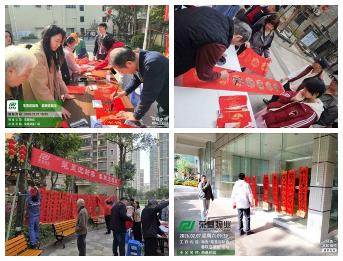 为传承传统文化,营造节日氛围,拉近邻里关系,荣基物业近日在翠堤湾、荣基花园、香槟花园、财富广场、尚学花园等小区举办“笔墨迎新春 春联送福至”主题活动,以民俗体验与互动游戏传递温情,共绘社区新春画卷。
