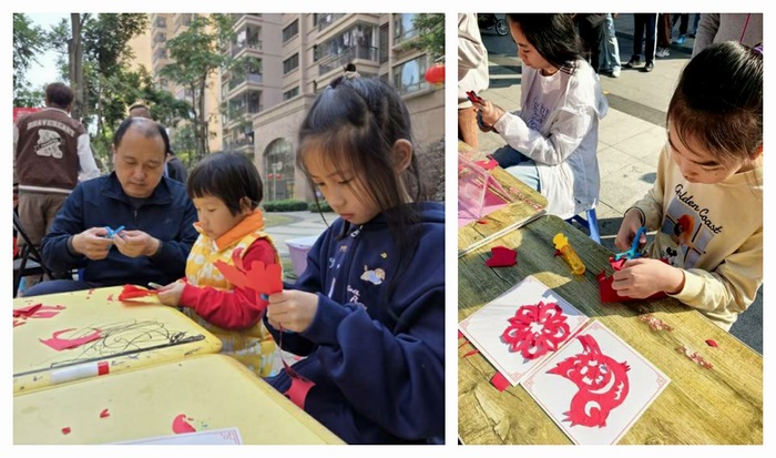 现场还设置多元民俗体验区:剪纸区里,红纸翻飞,窗花与生肖图案栩栩如生;
