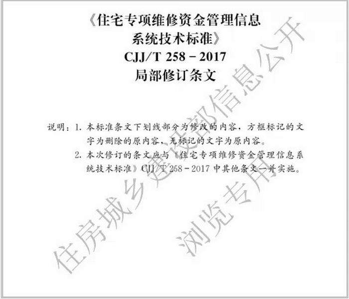 2026年2月13日,住房城乡建设部正式发布《关于发布行业标准〈住宅专项维修资金管理信息系统技术规范〉局部修订条文的公告》。