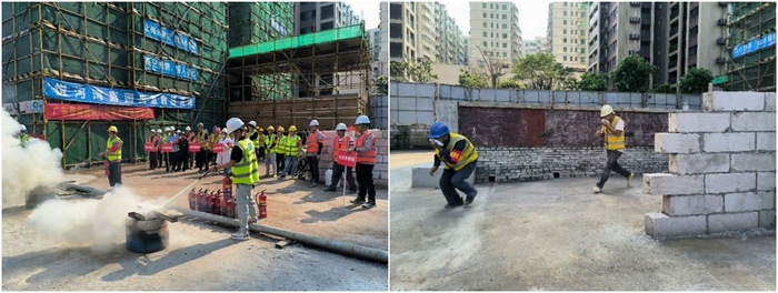 本次演练共设五个项目,分别为:高空坠落应急救援、触电事故应急救援、消防安全应急救援、坍塌事故应急救援及食物中毒事故应急救援。